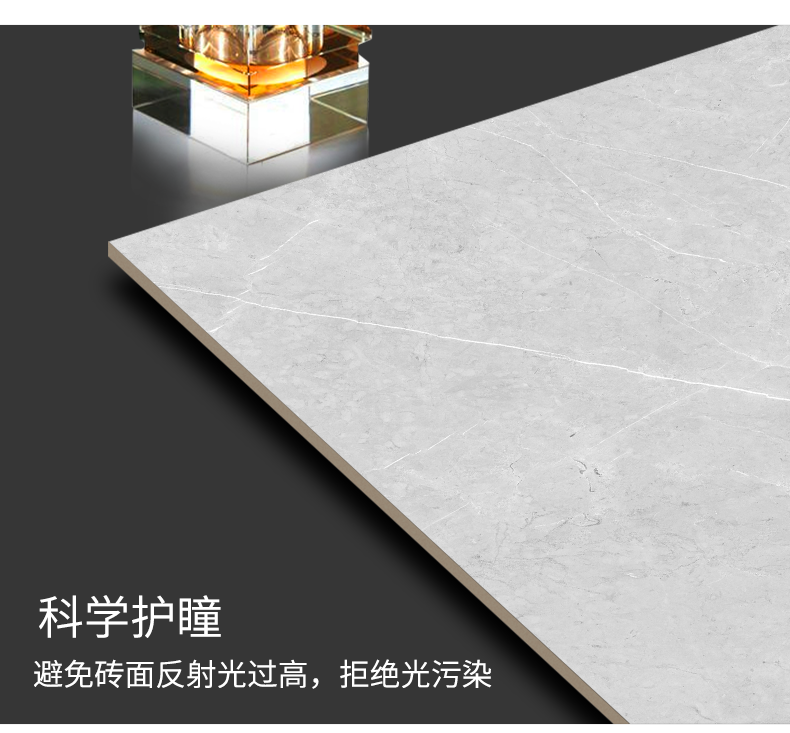 柔光瓷磚是磚面反射介于強(qiáng)光與弱光之間的一類瓷磚,其結(jié)合亮光類瓷磚的高調(diào)明艷裝飾和啞光類瓷磚的低調(diào)內(nèi)斂搭配效果,通過動(dòng)態(tài)柔光蠟拋技術(shù),降低產(chǎn)品反光率,從而達(dá)到人體舒適的視覺感受以及無光污染的空間裝飾效果。優(yōu)點(diǎn):1.視覺舒適,無光污染 2.堅(jiān)固耐磨,不易刮花.