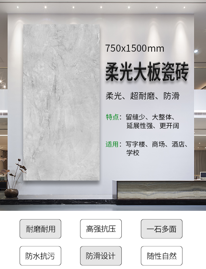 柔光瓷磚是磚面反射介于強(qiáng)光與弱光之間的一類瓷磚,其結(jié)合亮光類瓷磚的高調(diào)明艷裝飾和啞光類瓷磚的低調(diào)內(nèi)斂搭配效果,通過動態(tài)柔光蠟拋技術(shù),降低產(chǎn)品反光率,從而達(dá)到人體舒適的視覺感受以及無光污染的空間裝飾效果。優(yōu)點(diǎn):1.視覺舒適,無光污染 2.堅(jiān)固耐磨,不易刮花.