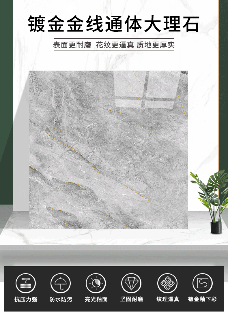 金線金粉 【產(chǎn)品介紹】航天級激光鍍金工藝,鉆石雕刻技術(shù),高溫慢燒,釉層不吸污吸水率低,真空鍍金燒成后再進行真空電鍍工藝,平整如鏡面,精拋細磨,磚面平整光滑細膩光澤度、亮度、硬度較高。立體紋理,釉下彩工藝,三次淋釉增加磚面的立體感。