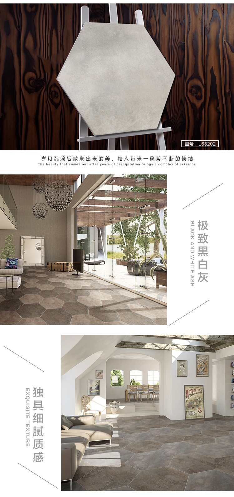 金曼古瓷磚廠家六角磚是一種表面呈現(xiàn)木紋裝飾圖案的環(huán)保建材.紋路逼真、自然樸實、沒有木地板褪色、不耐磨等缺點;曼古陶瓷木紋磚系列線條明快,圖案清晰為特色。本身具有阻燃,不腐蝕的特點,綠色、環(huán)保型建材;產(chǎn)品使用壽命長,耐磨,無需像木制產(chǎn)品那樣周期性地打蠟保養(yǎng)等。