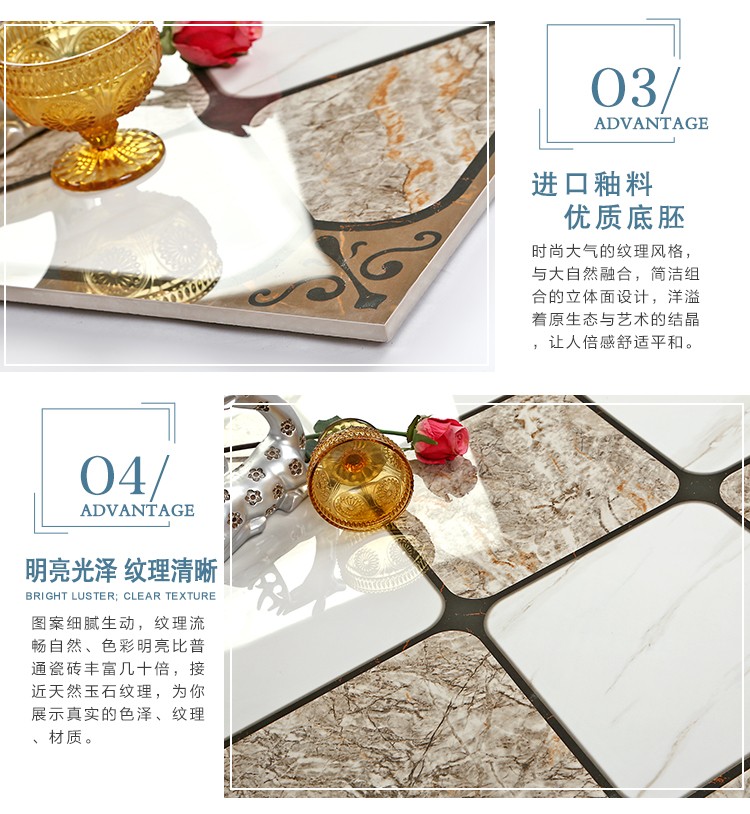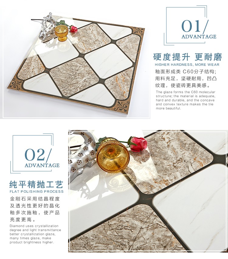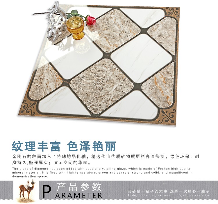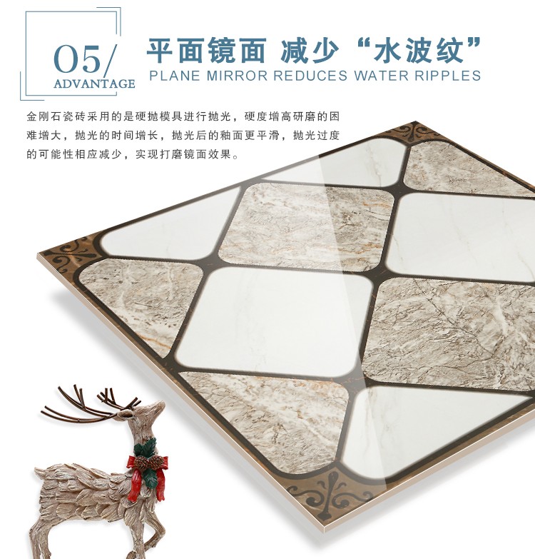 金曼古瓷磚廠家特價金剛石因高品質(zhì)而得名,是一款極具天然石材效果和微晶石質(zhì)感的仿石材瓷磚,它不但在價格、環(huán)保、耐用和清潔上極具優(yōu)勢,在質(zhì)感、規(guī)格、花色、重量等指標上,金剛石都遠遠勝于石材、拋光磚。相比其他種類的產(chǎn)品,它最大的特點可以用“高亮度、高耐磨、高平整、高逼真、高清晰、高環(huán)?!?。
