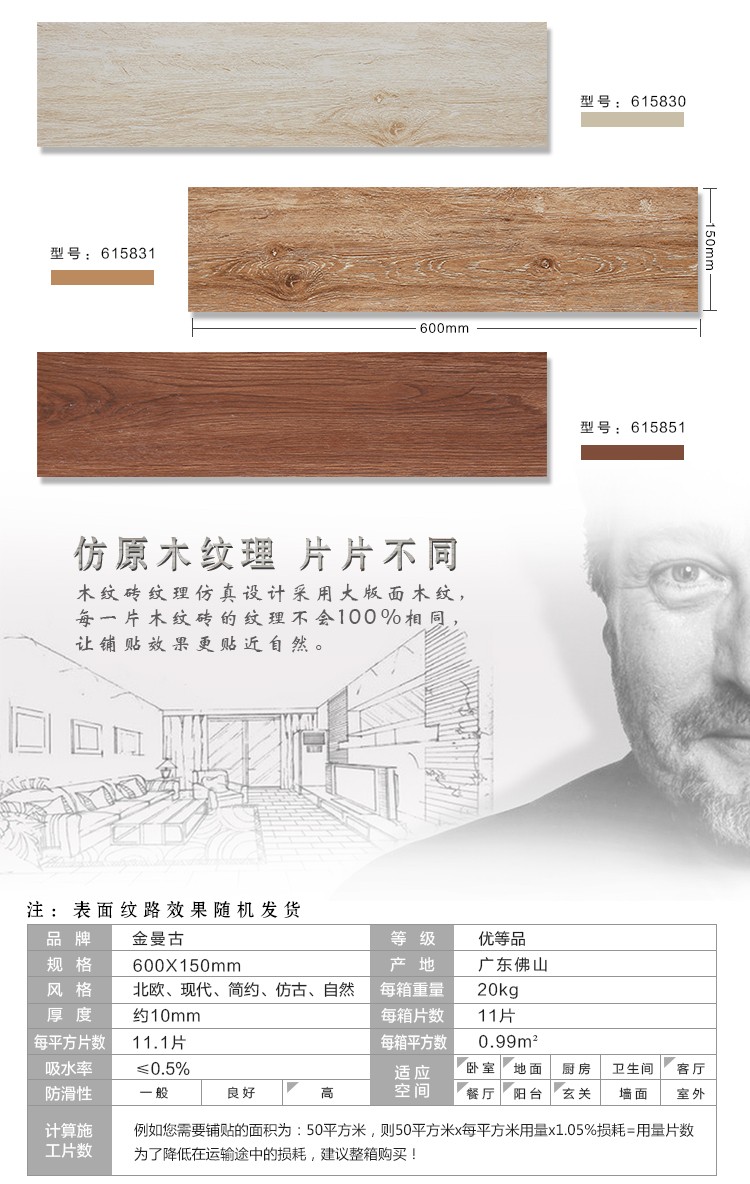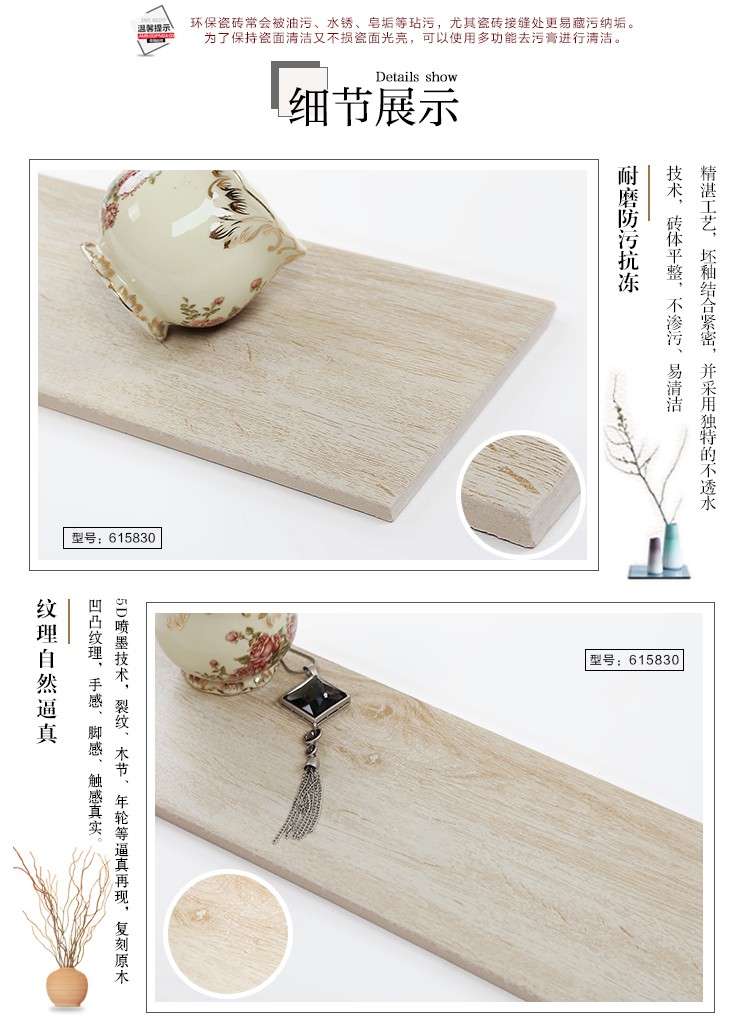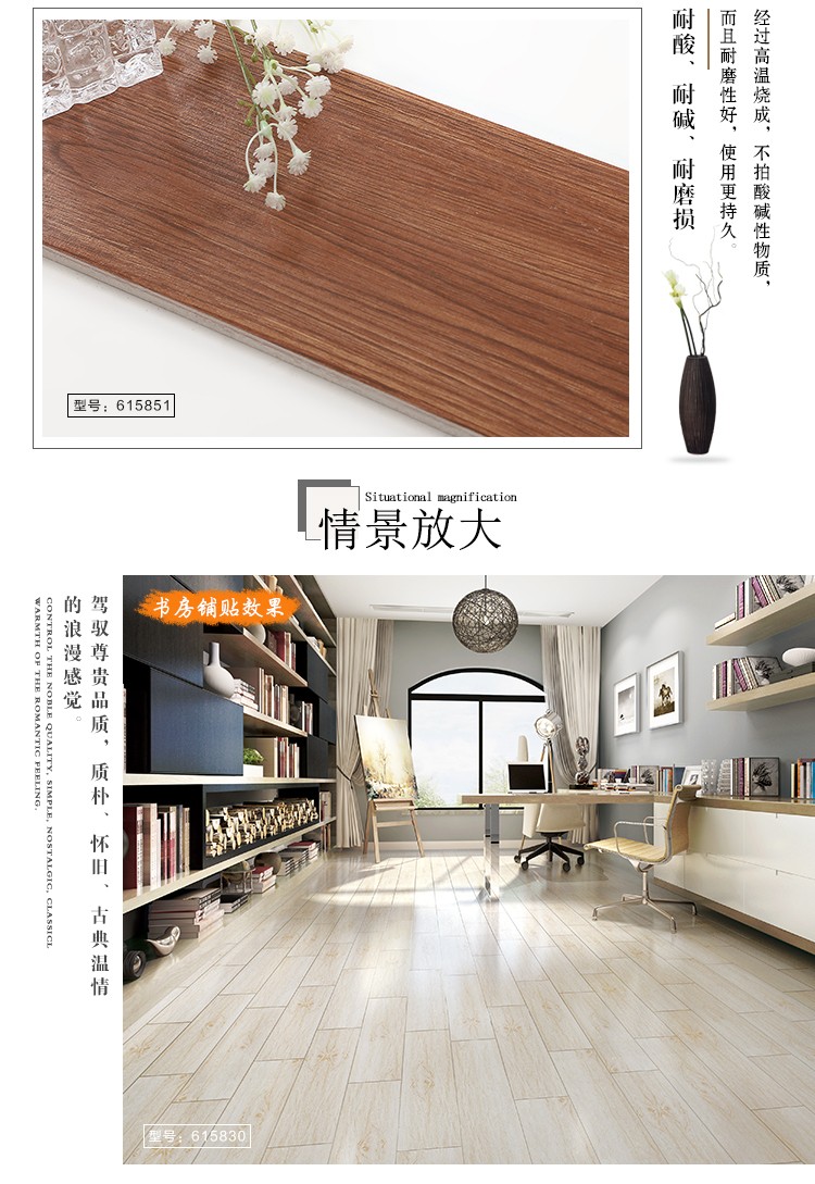 金曼古木紋磚,是一種表面呈現(xiàn)木紋裝飾圖案的環(huán)保建材.紋路逼真、自然樸實、沒有木地板褪色、不耐磨等缺點;曼古陶瓷木紋磚系列線條明快,圖案清晰為特色。本身具有阻燃,不腐蝕的特點,綠色、環(huán)保型建材;產品使用壽命長,耐磨,無需像木制產品那樣周期性地打蠟保養(yǎng)等.