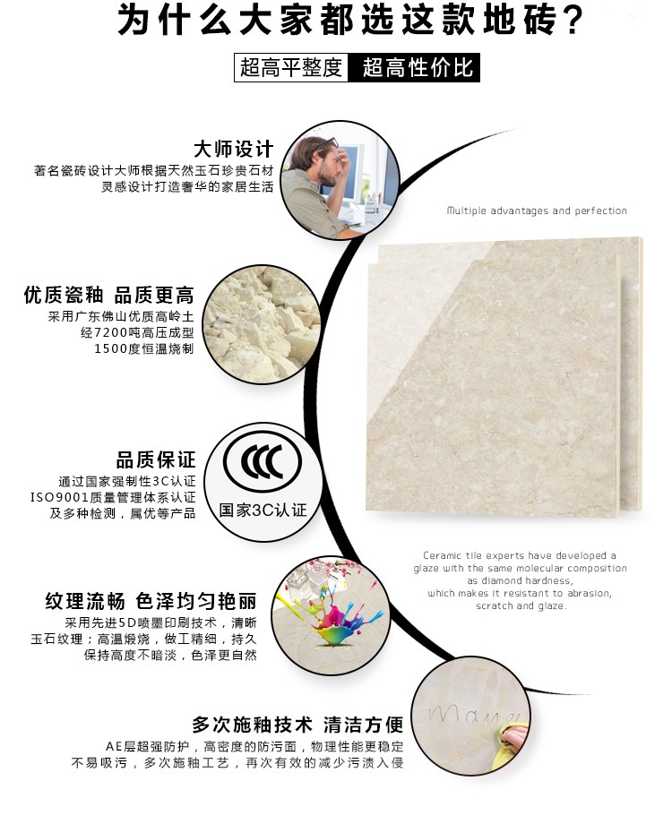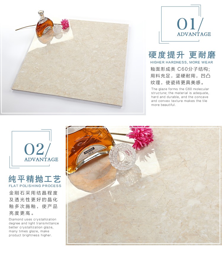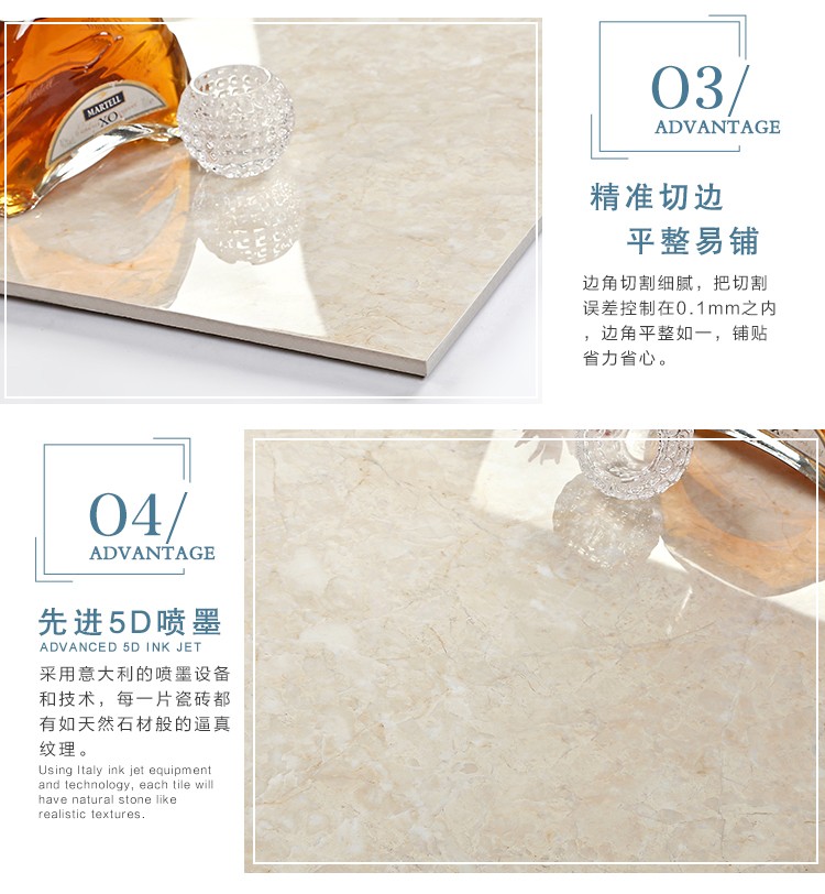 金曼古瓷磚廠家特價金剛石因高品質(zhì)而得名,是一款極具天然石材效果和微晶石質(zhì)感的仿石材瓷磚,它不但在價格、環(huán)保、耐用和清潔上極具優(yōu)勢,在質(zhì)感、規(guī)格、花色、重量等指標上,金剛石都遠遠勝于石材、拋光磚。相比其他種類的產(chǎn)品,它最大的特點可以用“高亮度、高耐磨、高平整、高逼真、高清晰、高環(huán)?!?。